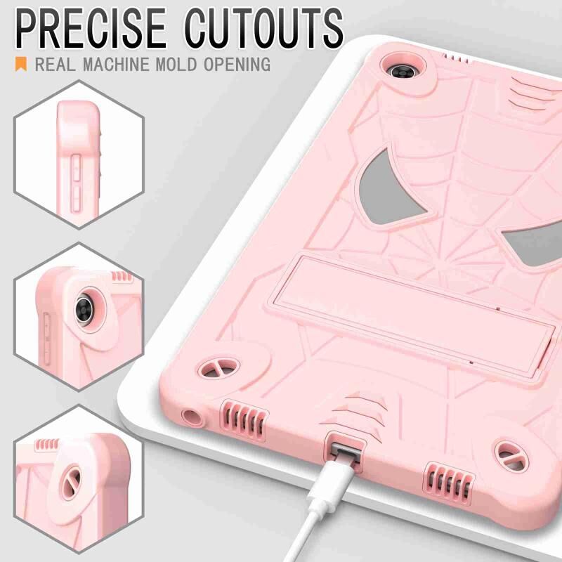 For Lenovo Tab M10 Plus 10.6 3rd Gen 2022 Spider Texture Silicone Hybrid PC Tablet Case with Shoulder Strap(Rose Gold)