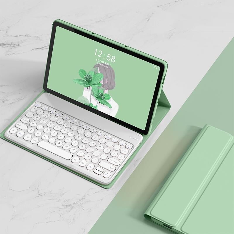 Για Lenovo Tab M10 Plus 10.6 3rd Gen 2022 YM-LX106 Στρογγυλό πλήκτρο Αποσπώμενο πληκτρολόγιο Bluetooth Tablet Δερμάτινη θήκη πληκτρολογίου χωρίς ποντίκι (Πράσινο Matcha)