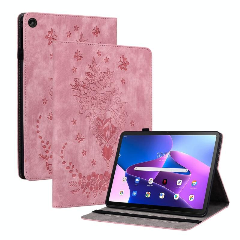 Θήκη ταμπλέτας από δέρμα με ανάγλυφο σχέδιο πεταλούδας για Lenovo Tab M10 Plus 10.6 3ης γενιάς (Ροζ)