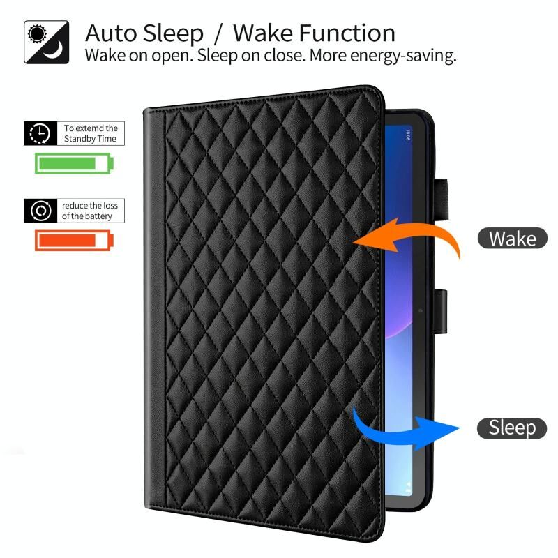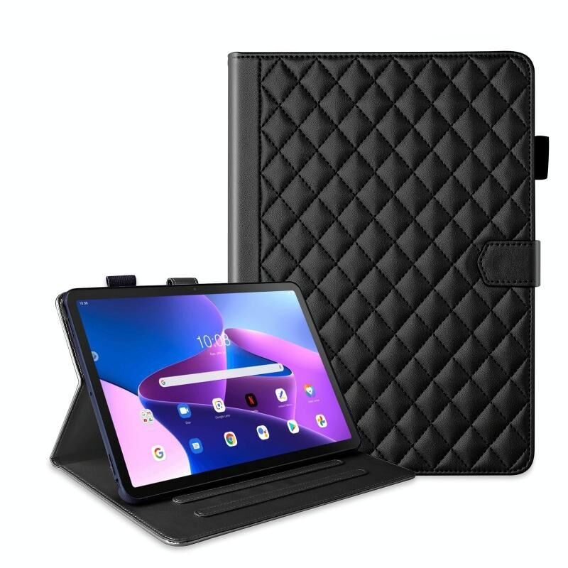 Για Lenovo Tab M10 Plus 10.6 3rd Gen Rhombus Lattice Leather Smart Tablet Case (Μαύρο)