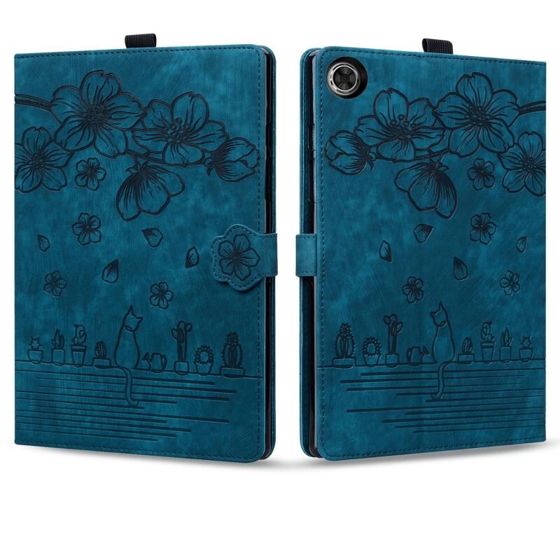 For Lenovo Tab M10 Plus 3rd Gen 2022 Cartoon Sakura Cat Embossed Leather Tablet Case(Blue)