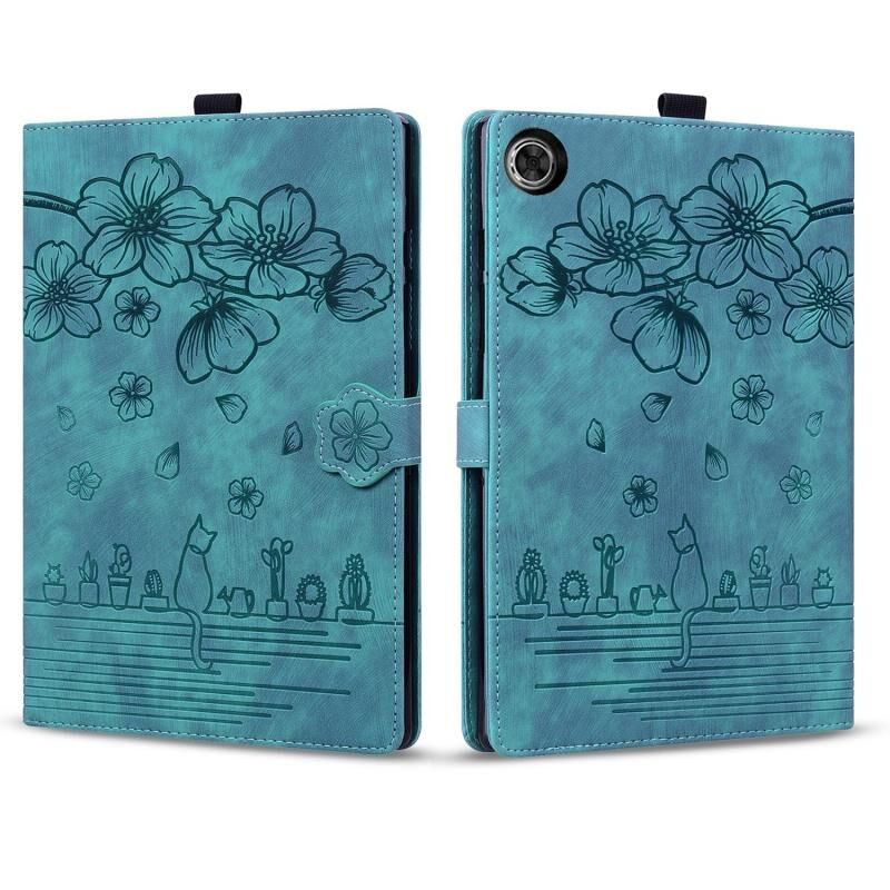 For Lenovo Tab M10 Plus 3rd Gen 2022 Cartoon Sakura Cat Embossed Leather Tablet Case(Green)