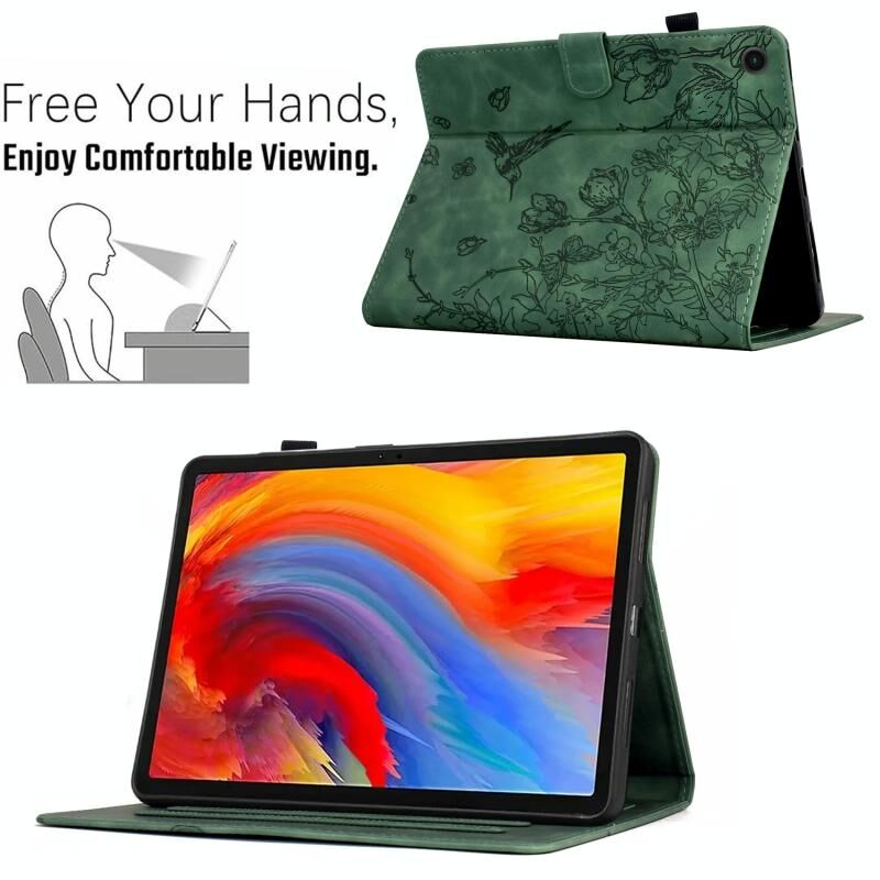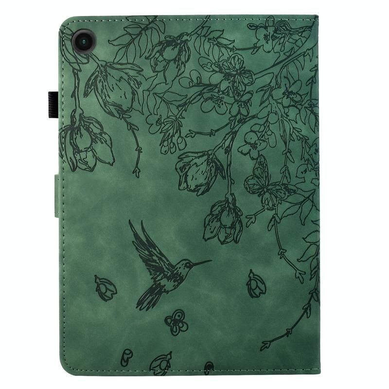 Θήκη για Lenovo Tab M10 Plus 3ης Γενιάς με ανάγλυφο σχέδιο λουλουδιών και πουλιών από έξυπνο δέρμα (Καφέ)