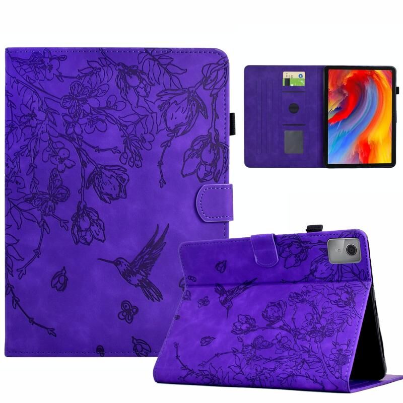 Θήκη για Lenovo Tab M11 με ανάγλυφα σχέδια λουλουδιών και πουλιών από έξυπνο δέρμα (Καφέ)