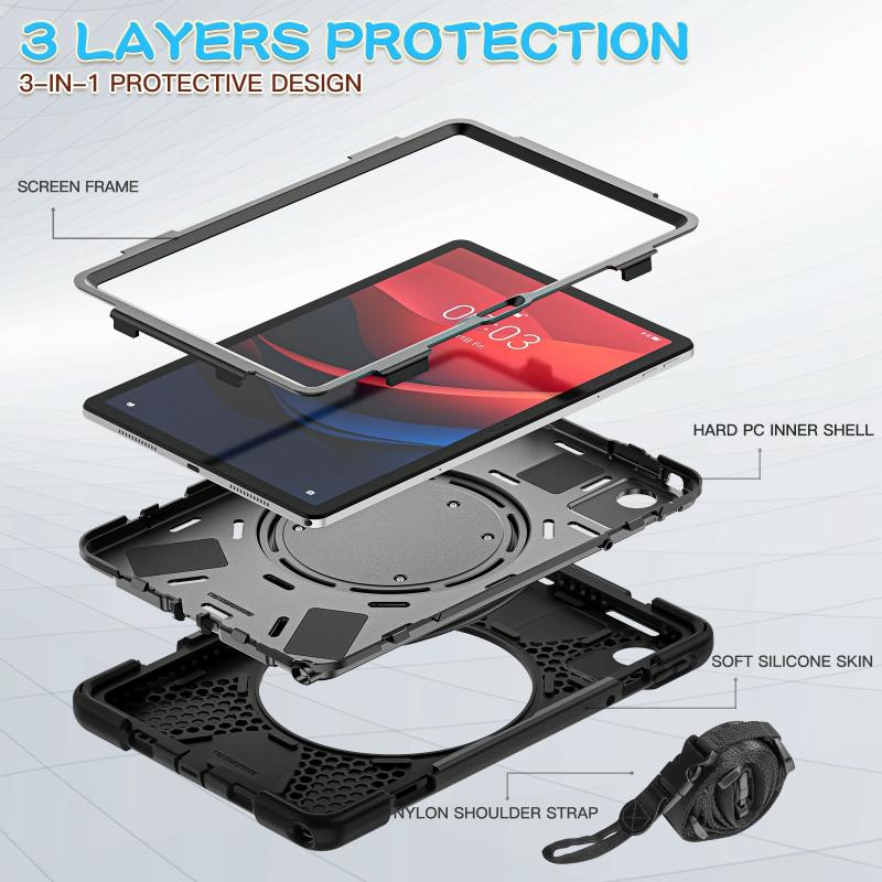 For Lenovo Tab M11 /Xiaomi Pad 11 2024 Silicone Hybrid PC Tablet Case with Holder & Shoulder Strap(Black)