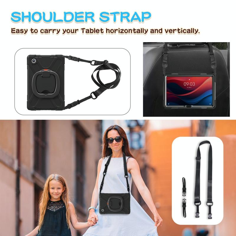 6. Detachable Shoulder Strap: The adjustable hand strap provides easy and comfortable grip, a must-have feature when you are presenting your tablet to others. The detachable and adjustable shoulder strap can help you carry your tablet more safely while hiking, traveling and other outdoor activities. This can also be used to secure your tablet to the car seat.