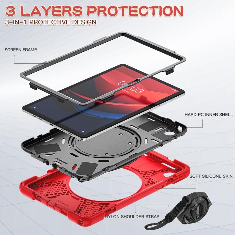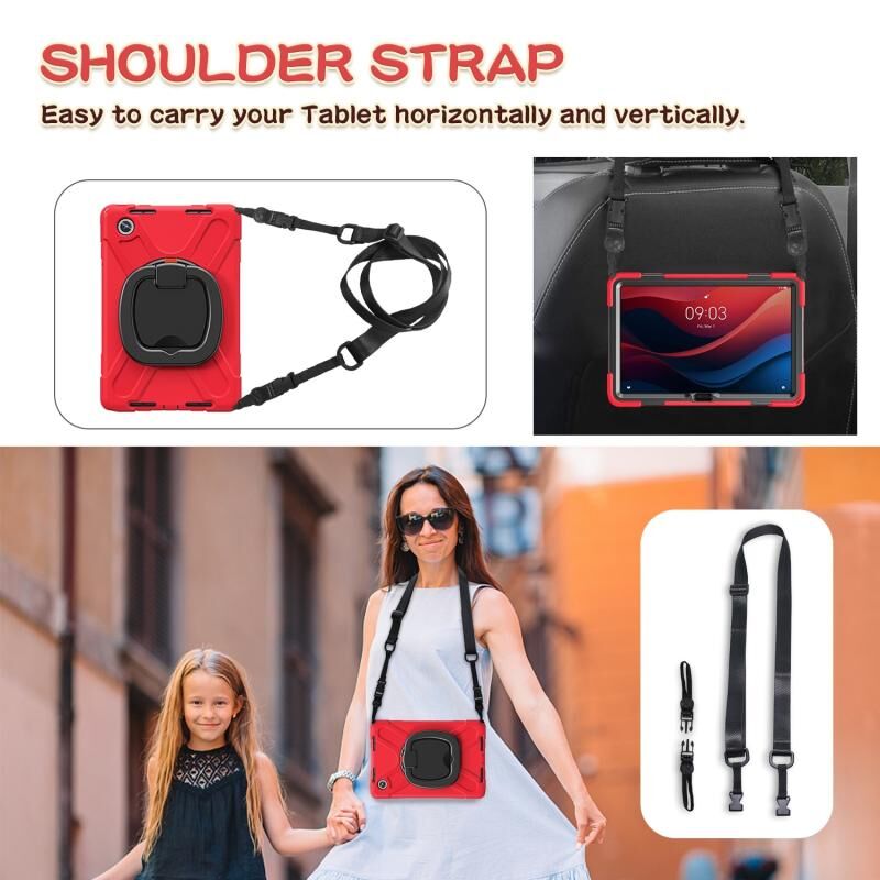 Για Lenovo Tab M11 / Xiaomi Pad 11 2024 Υβριδική θήκη tablet PC σιλικόνης με θήκη & λουράκι ώμου (κόκκινο)