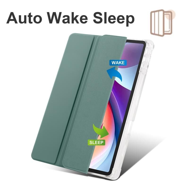 Για Lenovo Tab M11 / Xiaoxin Pad 11 2024 3 φορές Clear TPU Δερμάτινη θήκη tablet με υποδοχή για στυλό (βαθύ πράσινο)