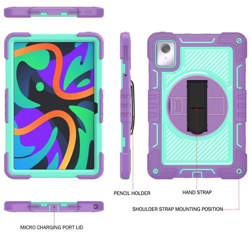 Για Lenovo Tab M11 / Xiaoxin Pad 11 2024 360 μοίρες περιστροφή PC αντίθεση σιλικόνης Tablet υπόθεση (μωβ + πράσινο μέντα)