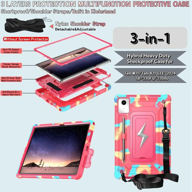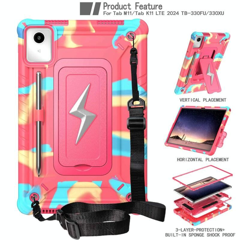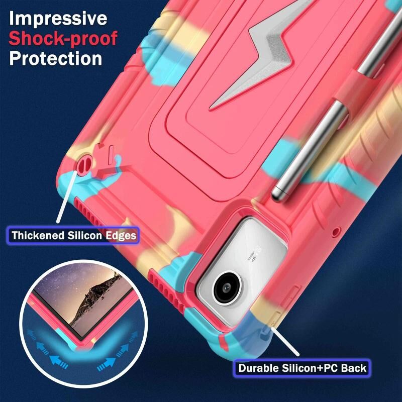 For Lenovo Tab M11 / Xiaoxin Pad 11 2024 Armor Bolt Shape Holder Silicone Hybrid PC Tablet Case(Camouflage Rose Red)