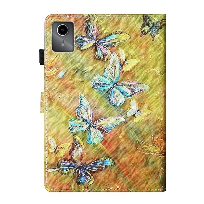 Θήκη Ταμπλέτας από Δέρμα με Έξυπνη Σύνδεση και Πολύχρωμη Σκίτσα/Ράψιμο για Lenovo Tab M11/ Xiaoxin Pad 11 2024 (Πεταλούδα)