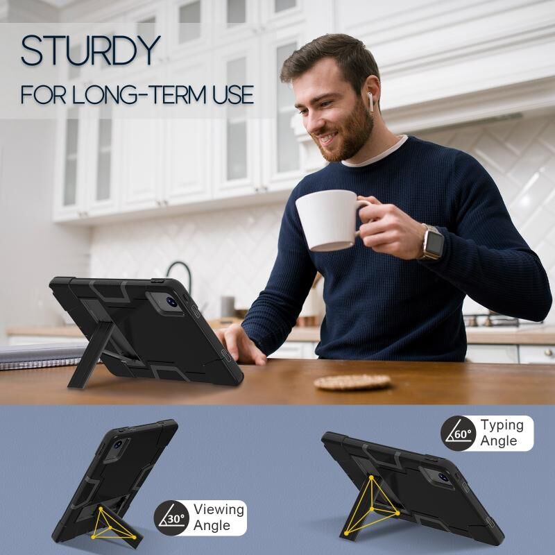 Για Lenovo Tab M11/ Xiaoxin Pad 11 2024 Contrast Color Silicone Hybrid PC Tablet Case with Holder (Μαύρο)