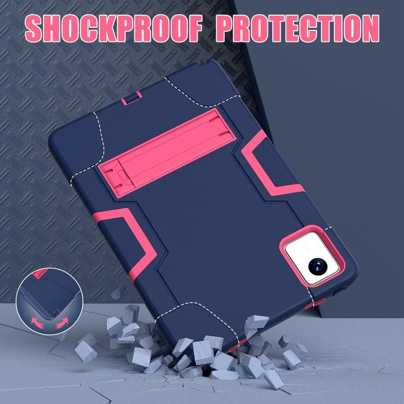 Για Lenovo Tab M11/ Xiaoxin Pad 11 2024 Contrast Color Silicone Hybrid PC Tablet Case with Holder (Navy Blue Rose Red)