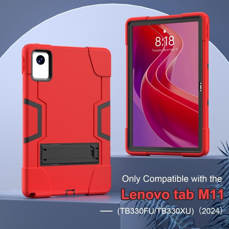 Για Lenovo Tab M11/ Xiaoxin Pad 11 2024 Contrast Color Silicone Hybrid PC Tablet Case με θήκη (κόκκινο μαύρο)