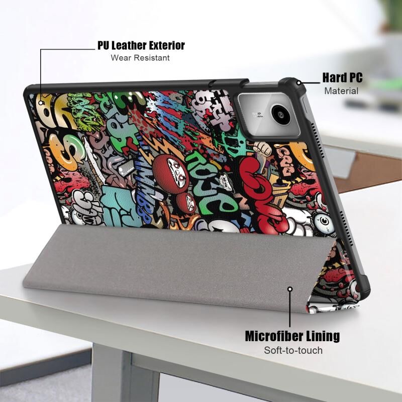 For Lenovo Tab M11/ Xiaoxin Pad 11 2024 Custer Coloured Drawing 3-folding Leather Smart Tablet Case(Graffiti)