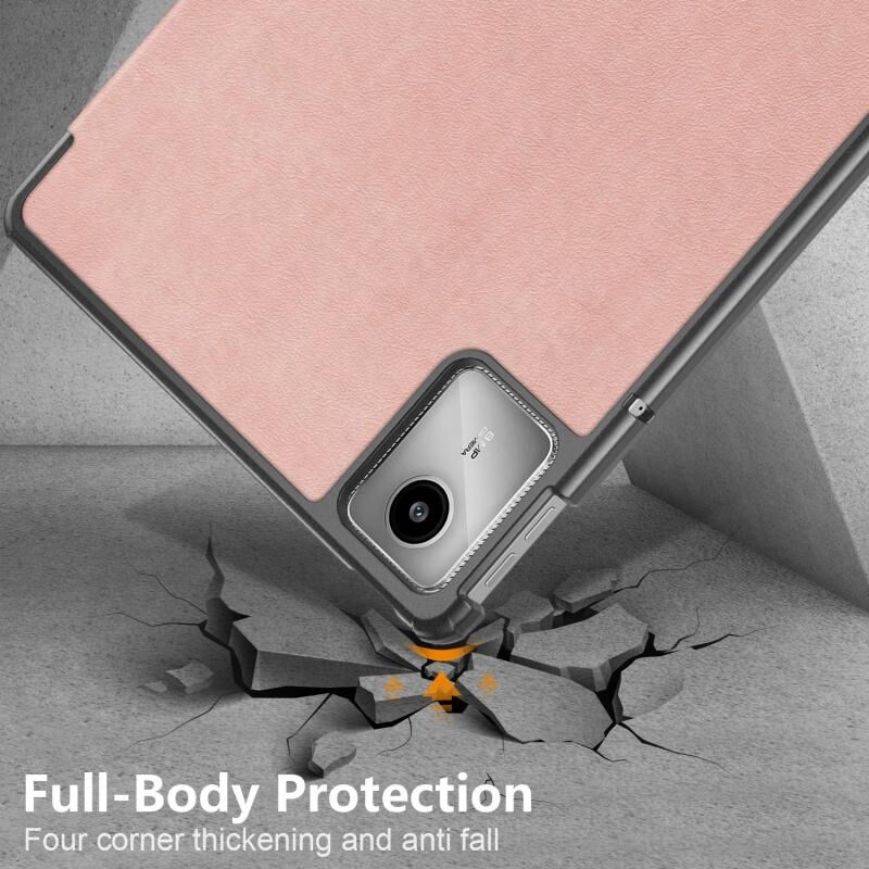 For Lenovo Tab M11/ Xiaoxin Pad 11 2024 Custer Pure Color 3-folding Leather Smart Tablet Case(Rose Gold)