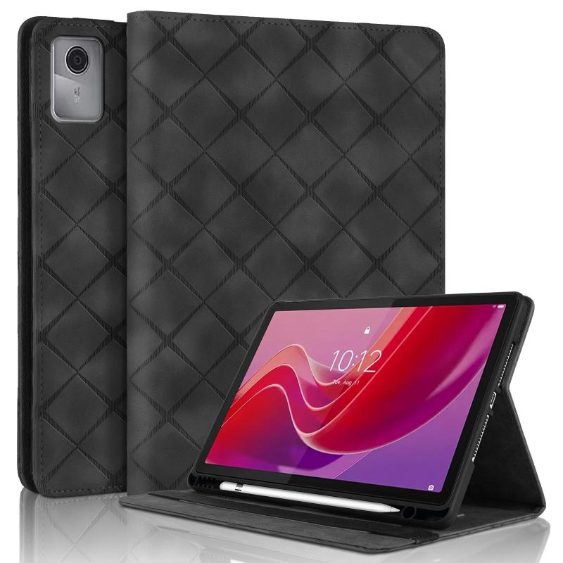For Lenovo Tab M11 / Xiaoxin Pad 11 2024 Rhombus Embossed Leather Smart Tablet Case(Black)