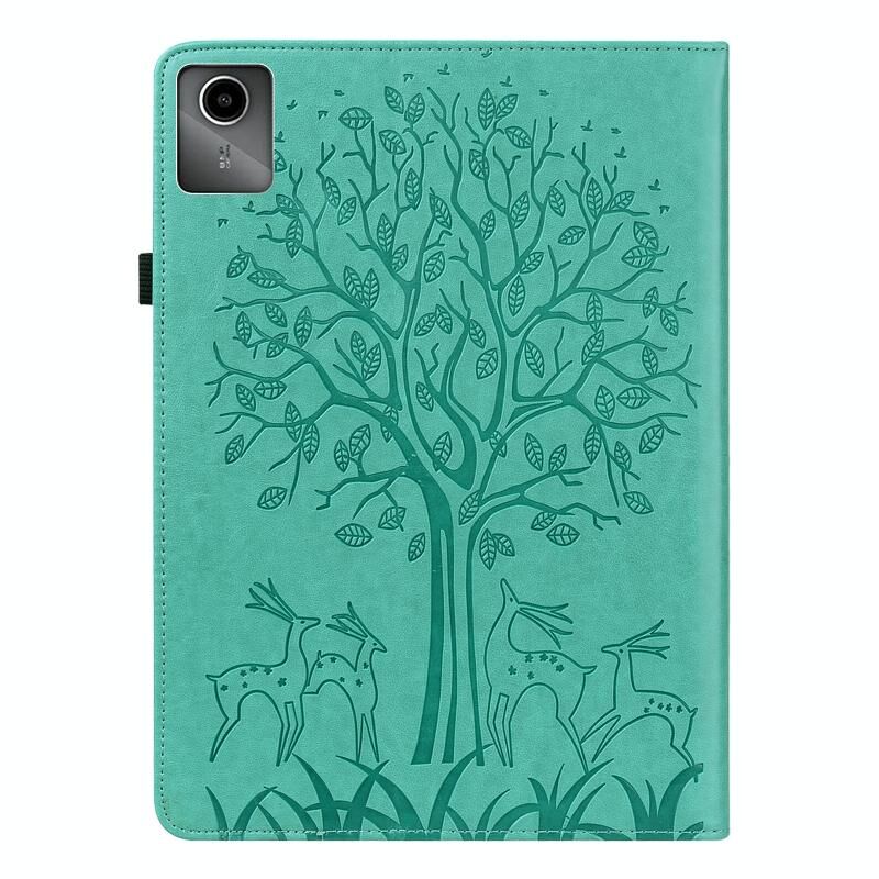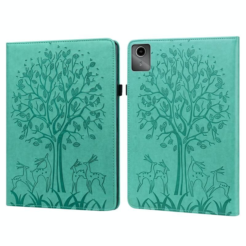 Για Lenovo Tab M11 / Xiaoxin Pad 11 2024 δέντρο & ελάφι ανάγλυφη δερμάτινη θήκη tablet (πράσινο)
