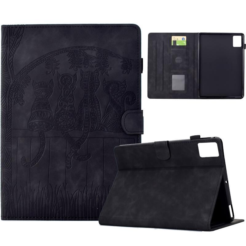 Θήκη Smart Tablet από Δέρμα με ανάγλυφα σχέδια Γάτας για Lenovo Tab M11 / Xiaoxin Pad 2024 (Καφέ)