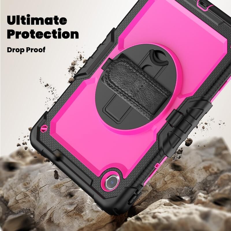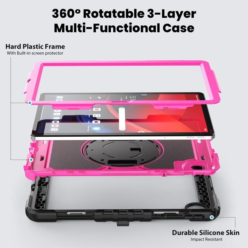 Για Lenovo Tab M11 / Xiaoxin Pad 2024 σιλικόνης υβριδική θήκη tablet PC με λουράκι ώμου (μαύρο Rose Red PC)