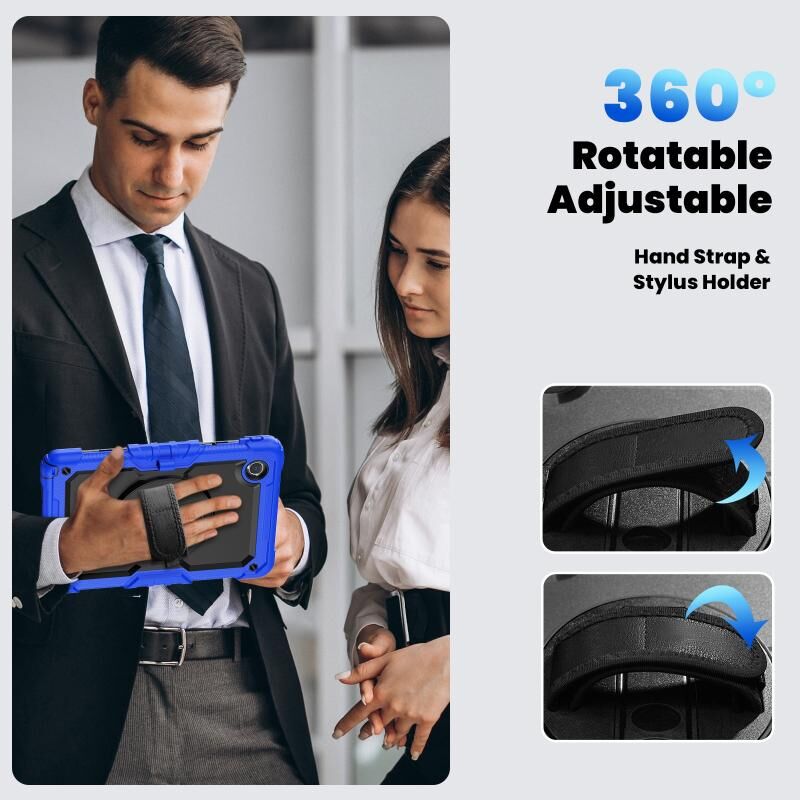 6. Αποσπώμενος ιμάντας ώμου: Ο ρυθμιζόμενος ιμάντας χειρός παρέχει εύκολο και άνετο κράτημα, ένα απαραίτητο χαρακτηριστικό όταν παρουσιάζετε το tablet σας σε άλλους. Ο αποσπώμενος και ρυθμιζόμενος ιμάντας ώμου μπορεί να σας βοηθήσει να μεταφέρετε το tablet σας με μεγαλύτερη ασφάλεια κατά την πεζοπορία, τα ταξίδια και άλλες υπαίθριες δραστηριότητες. Μπορεί επίσης να χρησιμοποιηθεί για να στερεώσετε το tablet σας στο κάθισμα του αυτοκινήτου.