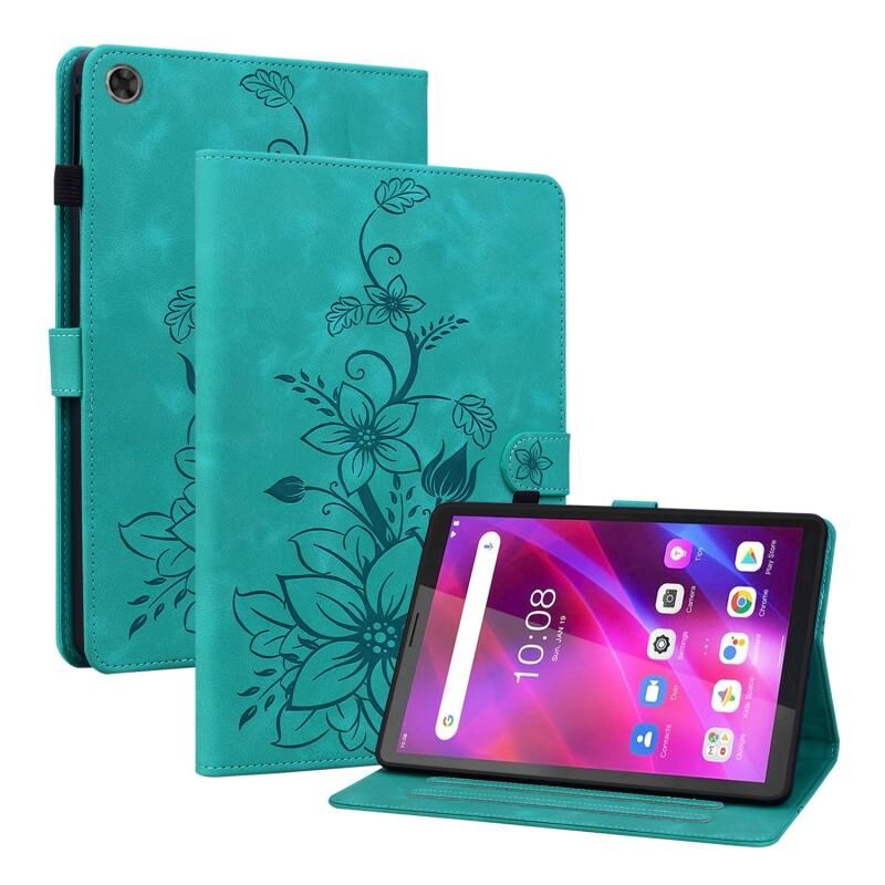 Για Lenovo Tab M7 3rd Gen Lily ανάγλυφη δερμάτινη θήκη tablet (πράσινο)