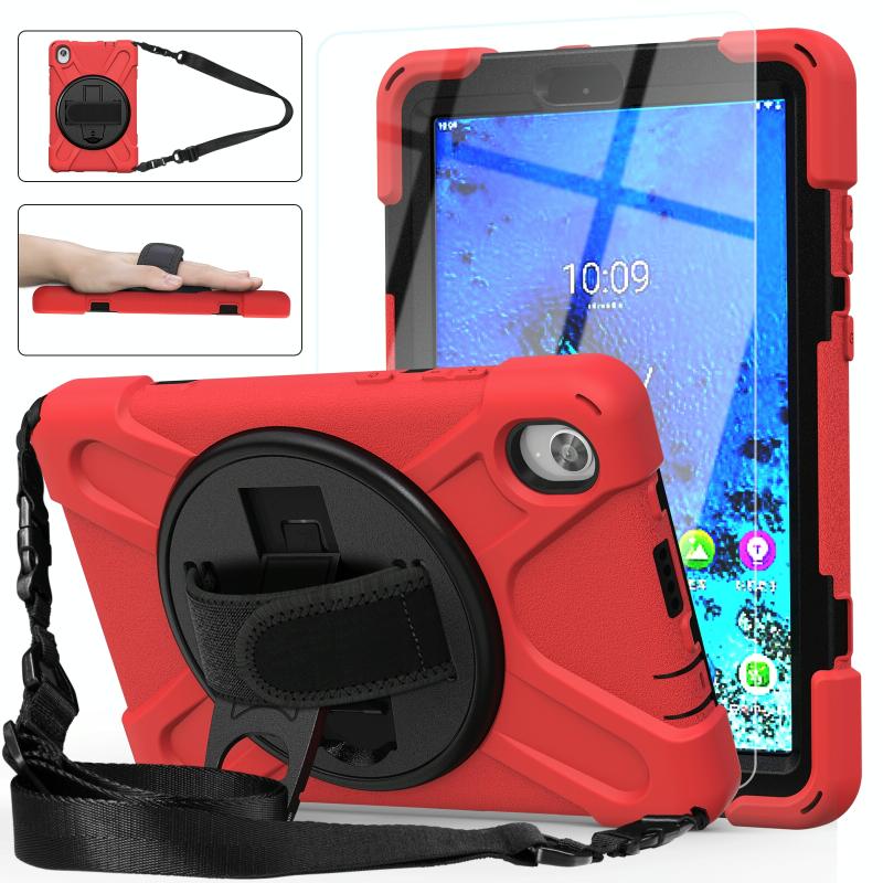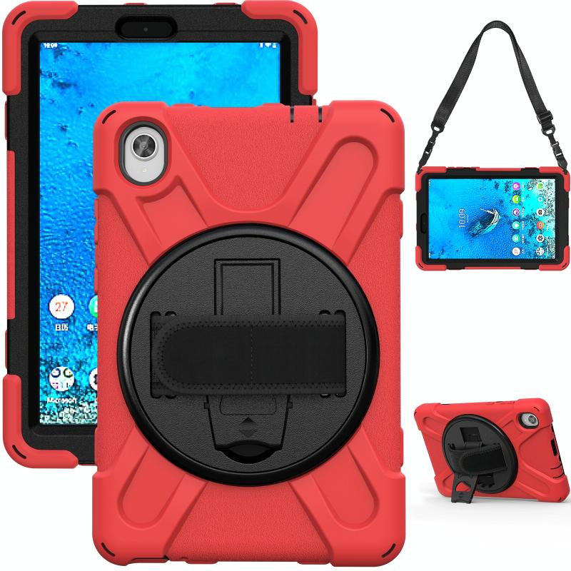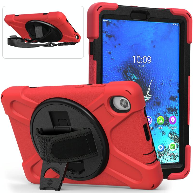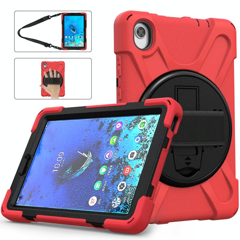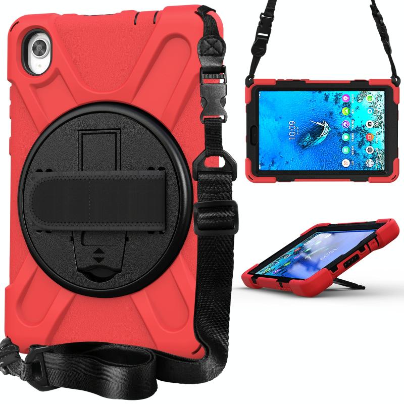 For Lenovo Tab M8 (2020) TB-8705F 8.0 inch Shockproof Colorful Silicone + PC Protective Case with Holder & Shoulder Strap & Hand Strap(Red)