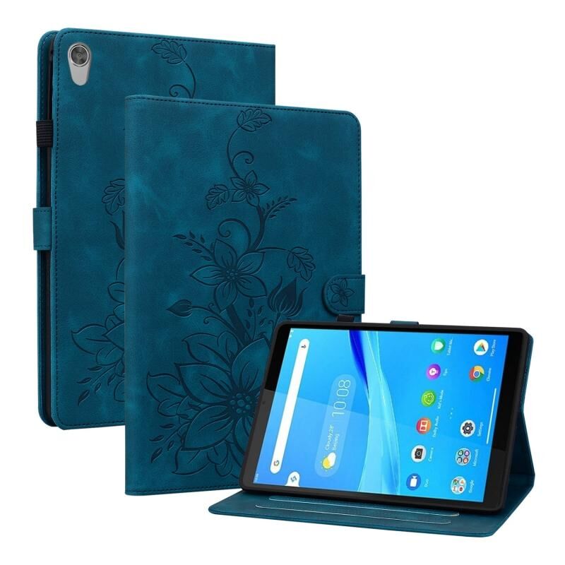 Για Lenovo Tab M8 HD 8.0 Lily ανάγλυφη δερμάτινη θήκη tablet (σκούρο μπλε)