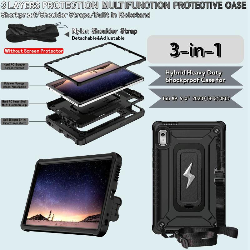 For Lenovo Tab M9 2023 Armor Bolt Shape Holder Silicone Hybrid PC Tablet Case(Black)