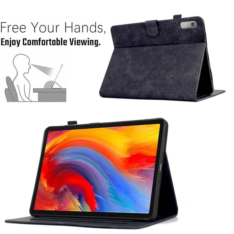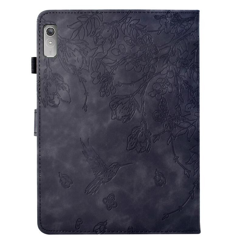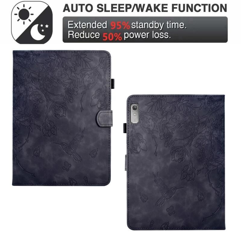 Θήκη για Lenovo Tab M9 με ανάγλυφα σχέδια λουλουδιών και πουλιών από έξυπνο δέρμα (Καφέ)