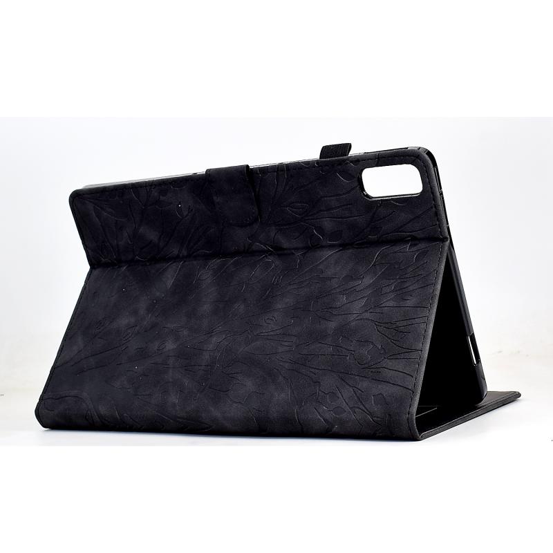 Θήκη ταμπλέτας Lenovo Tab M9 Fortune Tree με σχέδιο λουλουδιού και πίεση, από PU δέρμα με λειτουργία αφύπνισης/ύπνου (Μαύρο)