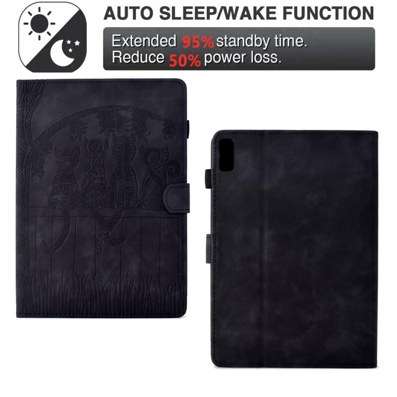 Θήκη Smart Tablet από Δέρμα με ανάγλυφα σχέδια Γάτας για Lenovo Tab M9 TB-310FU (Μαύρο)