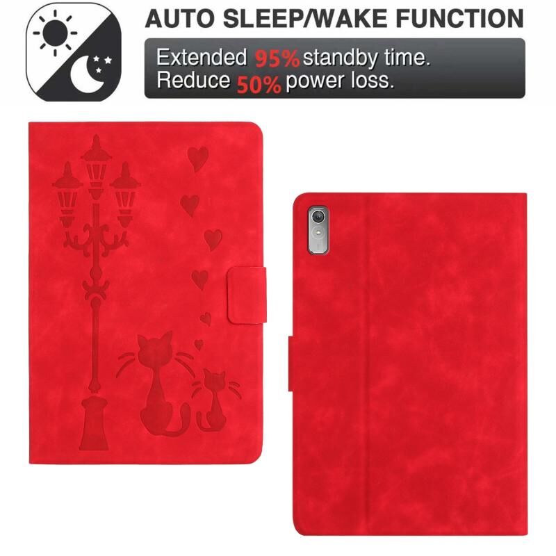 For Lenovo Tab M9 / TB-310FU Embossed Couple Cat Smart Tablet Leather Case(Red)