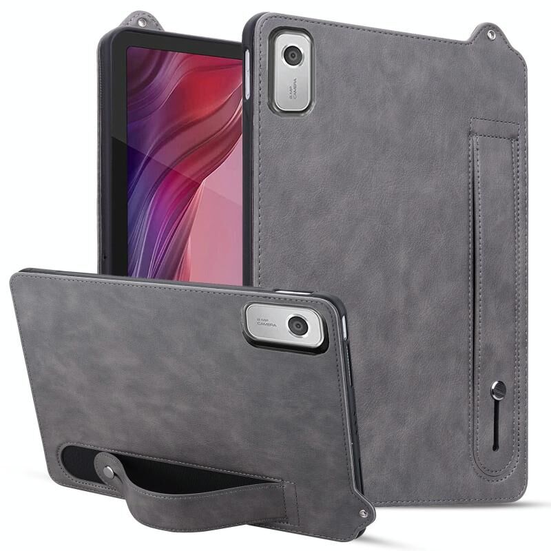 Για Lenovo Tab M9 TPU δέρμα πίσω θήκη tablet με ζώνη καρπού (γκρι)