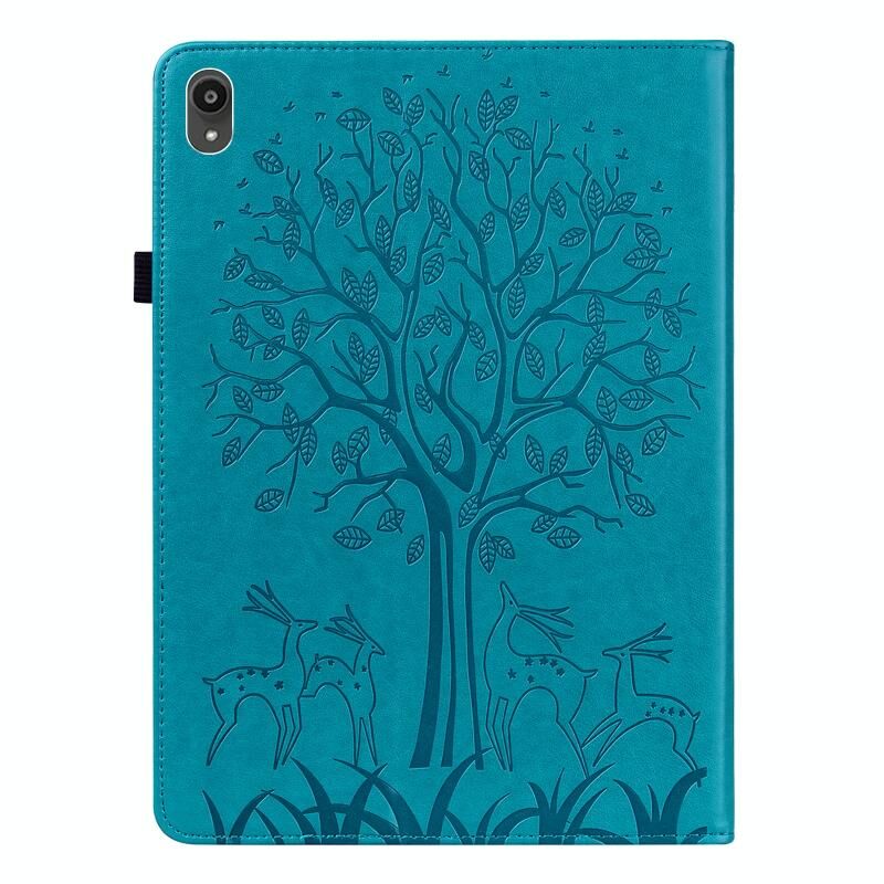 For Lenovo Tab P11 2020 / P11 Plus 2021 Tree & Deer Pattern Pressed Printing Horizontal Flip PU Leather Case with Holder & Card Slots(Blue)
