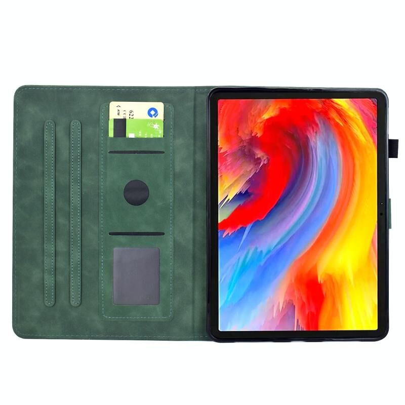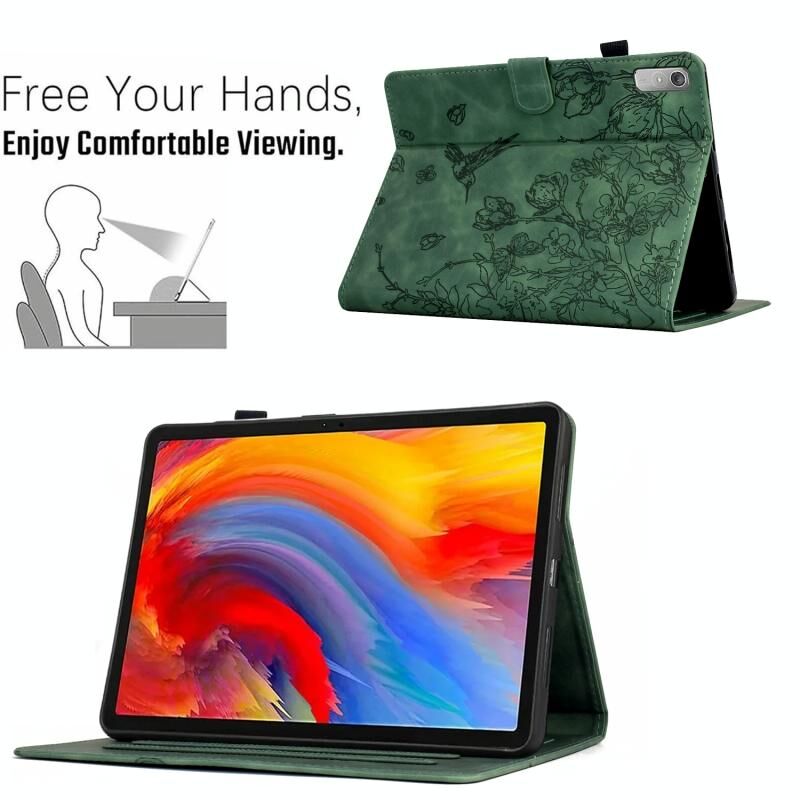 Θήκη για Lenovo Tab P11 2ης γενιάς με ανάγλυφα σχέδια λουλουδιών και πουλιών από έξυπνο δέρμα (Καφέ)