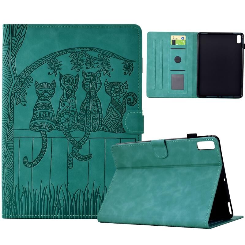 Θήκη για Lenovo Tab P11 Gen 2 με ανάγλυφο σχέδιο γάτας από δέρμα, έξυπνη θήκη ταμπλέτας (Πράσινο)
