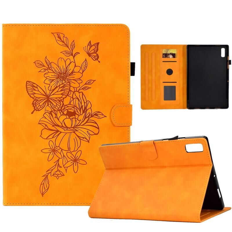 Για Lenovo Tab P11 Gen 2 Peony Butterfly ανάγλυφη δερμάτινη θήκη για tablet (χακί)