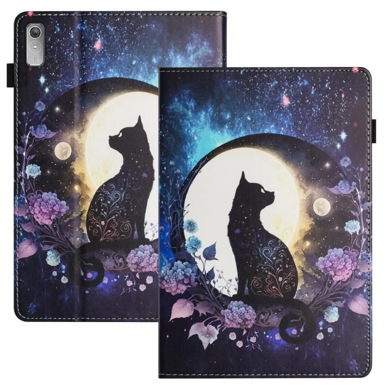 Θήκη για Lenovo Tab P11 Gen 2 από Δέρμα με Υφή Λίτσι και Σχέδιο Γάτας (Ραπτική)