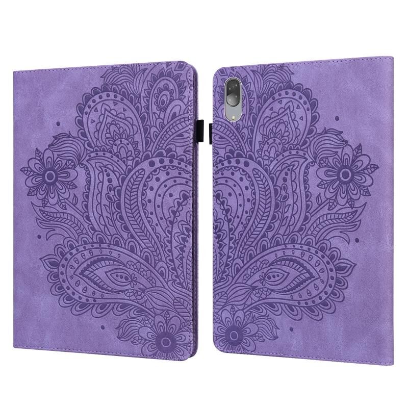 Για Lenovo Tab P11 Pro 11,5 ιντσών 2021 TB-J706L / TB-J706F Παγώνι ανάγλυφο μοτίβο TPU + PU δέρμα Tablet υπόθεση (μωβ)