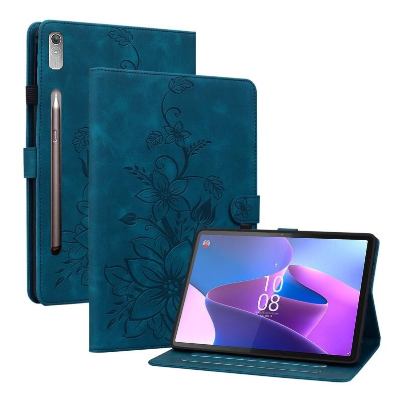 Για Lenovo Tab P11 Pro Gen 2 11.2 Lily ανάγλυφη δερμάτινη θήκη tablet (σκούρο μπλε)