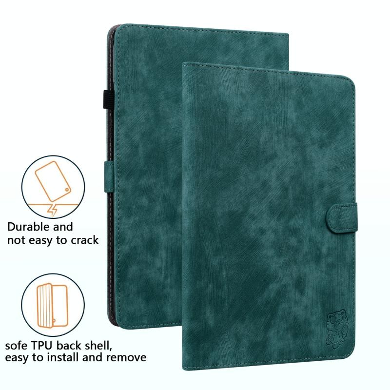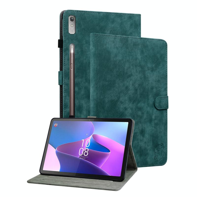 Θήκη δερμάτινη με σχέδιο τίγρης για Lenovo Tab P11 Pro Gen 2 11.2 (Σκούρο Πράσινο)