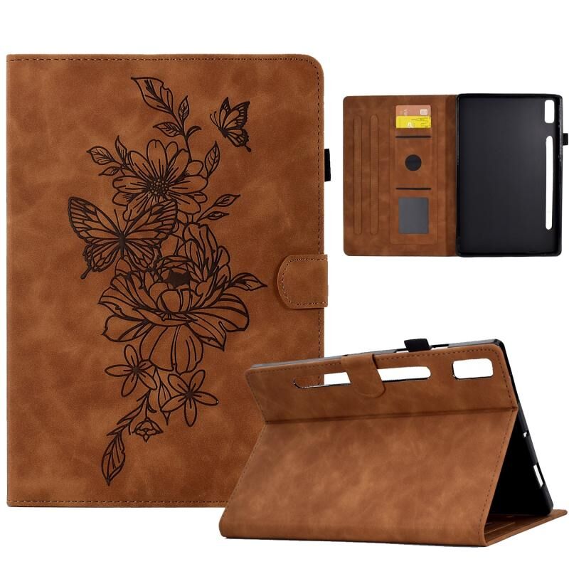 Για Lenovo Tab P11 Pro Gen 2 Peony Butterfly ανάγλυφη δερμάτινη θήκη tablet (καφέ)