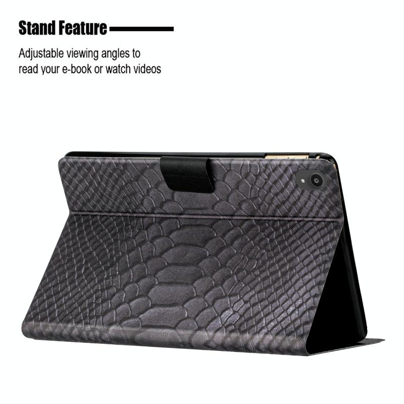 Θήκη για Lenovo Tab P11, Μονόχρωμη, Δερμάτινη με Υφή Κροκόδειλου, Έξυπνη (Μαύρο)