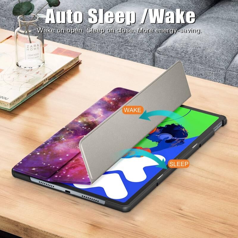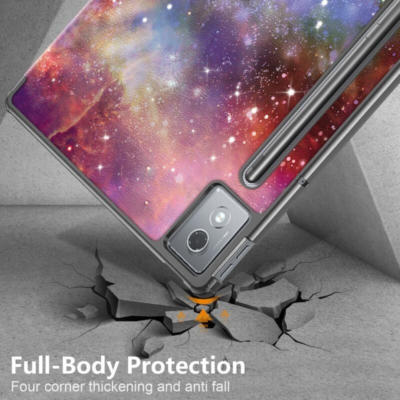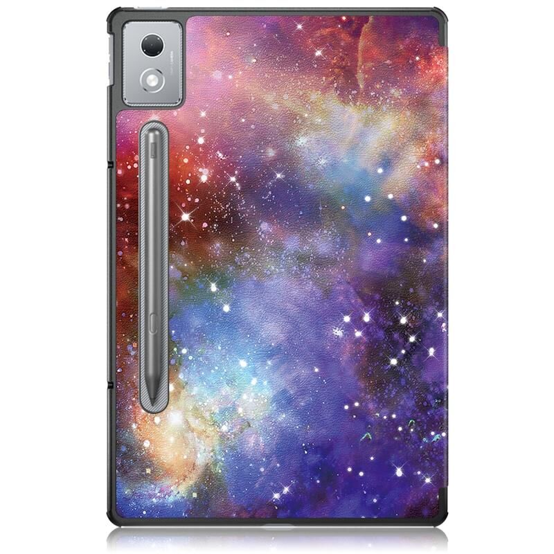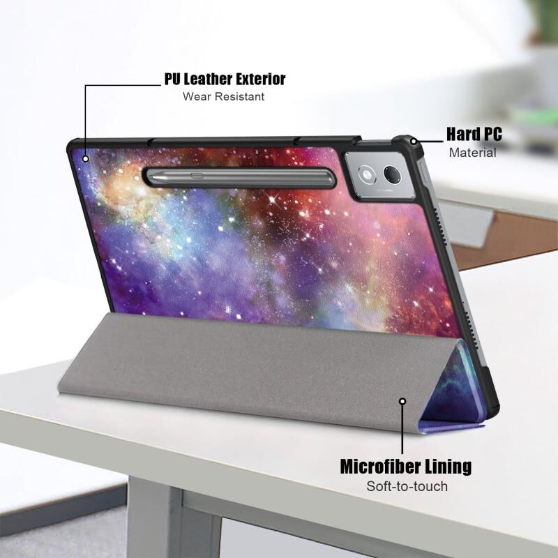 For Lenovo Tab P12 12.7 2025 Custer Coloured Drawing 3-folding Leather Smart Tablet Case(Milky Way)