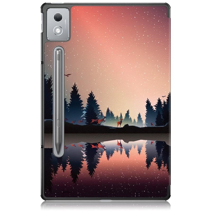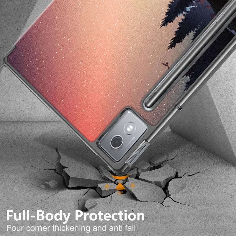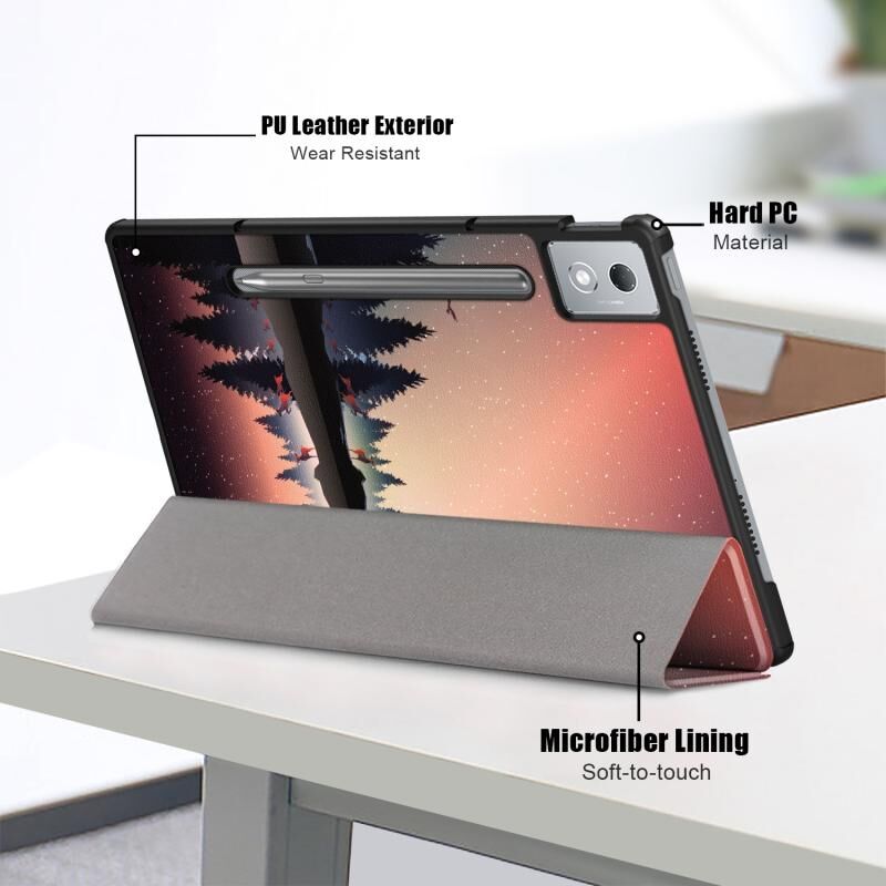 For Lenovo Tab P12 12.7 2025 Custer Coloured Drawing 3-folding Leather Smart Tablet Case(Sunset)