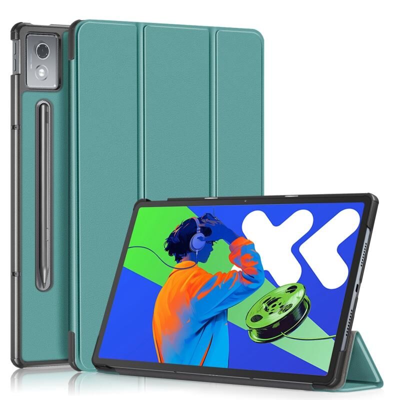 For Lenovo Tab P12 12.7 2025 Custer Pure Color 3-folding Leather Smart Tablet Case(Green)
