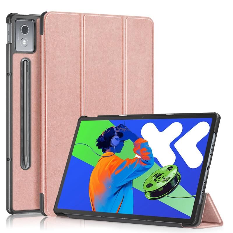 For Lenovo Tab P12 12.7 2025 Custer Pure Color 3-folding Leather Smart Tablet Case(Rose Gold)