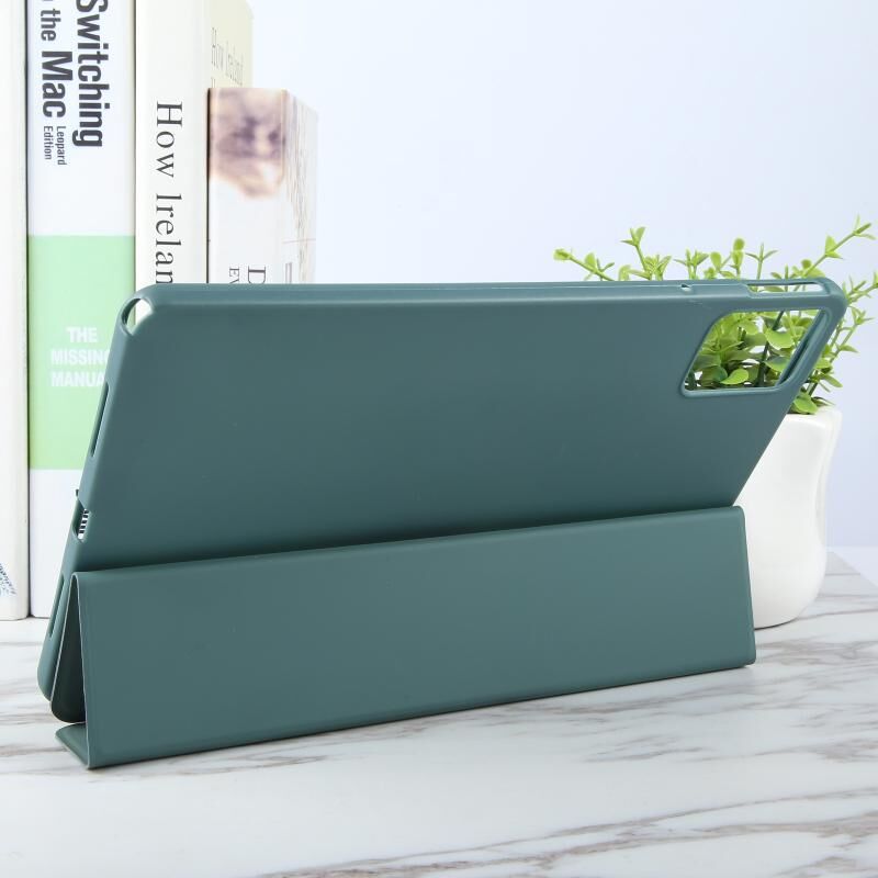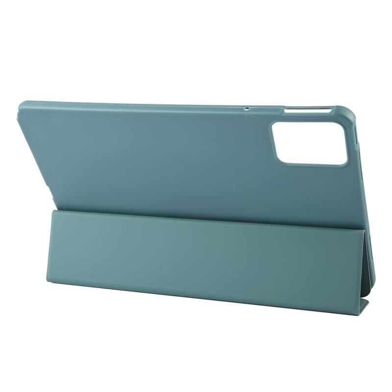 Για Lenovo Tab P12 12.7 2025 Tri-fold σιλικόνης δερμάτινη θήκη tablet (σκούρο πράσινο)