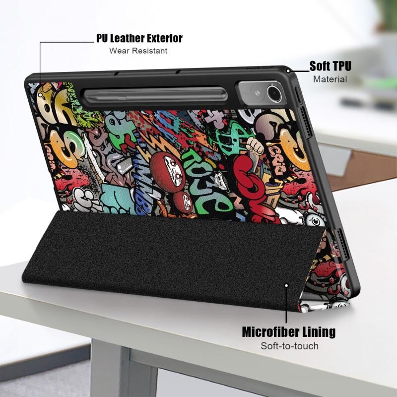 Θήκη Ταμπλέτας Lenovo Tab P12 12.7 /P12 Pro 2ης Γενιάς, Διπλού Τριπλού Σχεδίου, Βαμμένη από TPU με Έξυπνο Δέρμα (Graffiti)
